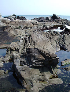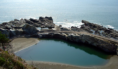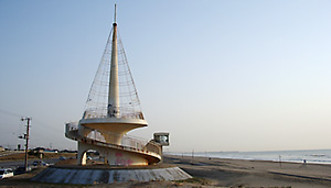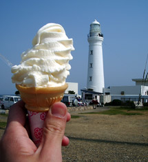 寝たり起きたりを繰り返して2日目の4:30。車中泊したコンビニでおにぎりとお茶を買い、車の中で食べてから太東崎へ移動。誰もいないと思っていたがすでに車が2台。どちらも日の出を待っているようだった。日の出時間の15分くらい前に外に出て、灯を点す太東崎灯台や岬から見下ろす夜の街を眺めてから、水平線から顔を出す日の出をじっと待つ。外はかなり冷え込んでいて手がかじかむ。前日の夕方から曇ってしまったので天気が心配だったが、太東崎から見る限り空には雲一つ無いのでとりあえず安心。そして5:45に太陽が顔を出す。水平線からの日の出は今までに何回か見ているが、やっぱり心が洗われるような清清しい気持ちになれていい。太陽が完全に水平線から出て、さらに上へ昇って行くまでじっと眺めていた。