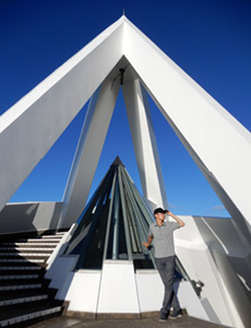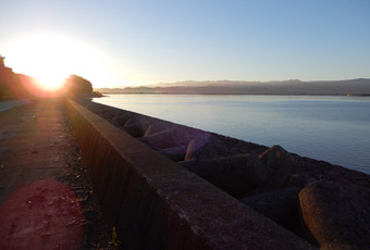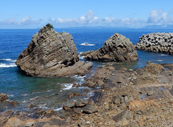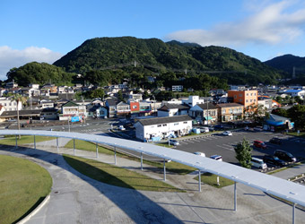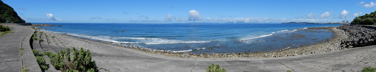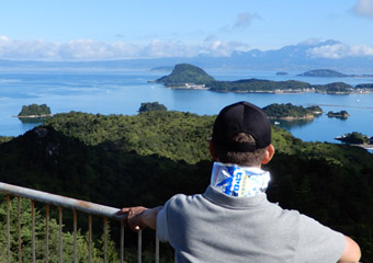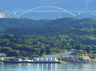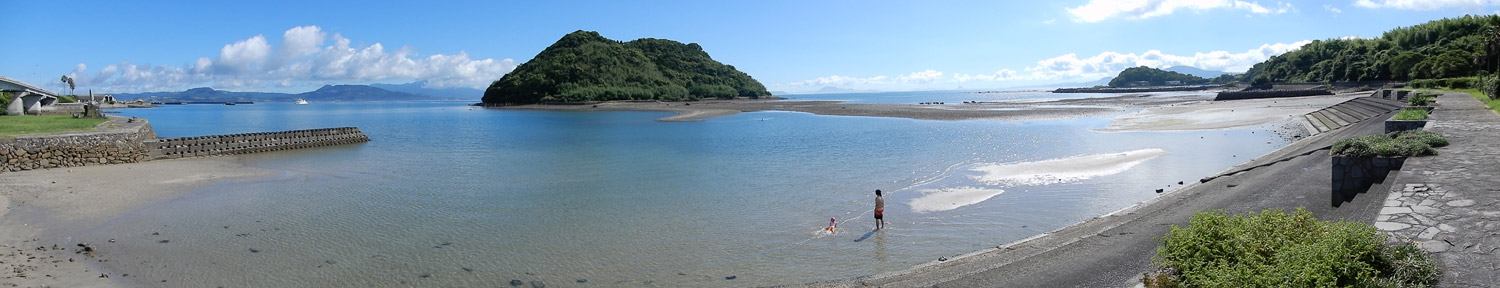 道の駅のトイレの鏡に映った自分を見て、額と首周りがだいぶ日焼けしている事に気付かされる。特に首周りが酷い…元々肌が色白で日焼けしやすい体質なのかもしれないが、とにかく真夏に外出する時はしっかり日焼け対策をしないといけないと反省。そしてどうやら旅行3日目も快晴。旅行期間中ずっと快晴というのは本来喜ぶべき事だが、また1日猛暑に耐えて観光しなければならないと考えると憂鬱になる。しかし旅行3日目の最終目的地こそ今回の旅の真の目的地。という事で、気を持ち直して道の駅を出発。熊本県天草市の彼の地、崎津の”教会の見える展望公園”を目指す。道の駅不知火から崎津までは約100kmの道のりで、はるばる広島から熊本県西部まで走って来たという事もあり、いくつかの観光スポットに立ち寄りながら崎津へ向かう。 |
