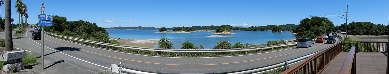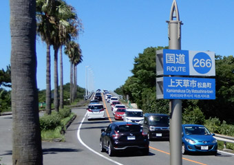 まもなく最終目的地の崎津に到着するという所で、運転している道路に違和感を覚える。過去2度の崎津訪問では海岸沿いの細道を通って集落まで行ったはずが、ずっと道幅の広い国道を走っている。そして長いトンネルを抜けたところで差し掛かった交差点で、「道の駅