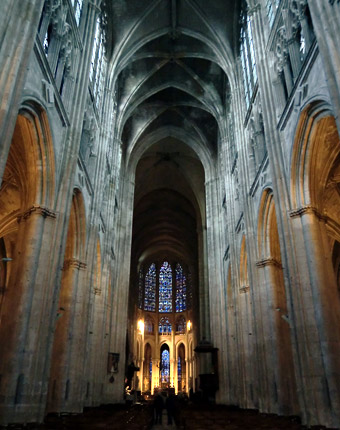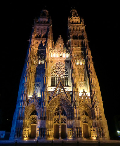 モン・サン・ミッシェルから300km先のトゥールまでバスで4時間半の長距離移動。座席に座っているだけとはいえ結構疲れる。途中高速道路のサービスエリアでトイレ休憩。男女兼用トイレに入り用を足して個室から出ると、並んでいるのは女性だけ。何か様子がおかしいと思ったら、男女兼用だったトイレが女性専用トイレになっていた!どうやら自分が用足しをしている間に、係員が扉の札を男女兼用マークのものから女性専用に変えたらしい。並んでいた女性のほとんどが同じツアーメンバーで事情も知っていたので、キョトンとした自分を見て皆爆笑。変な所で和んでしまった。 |