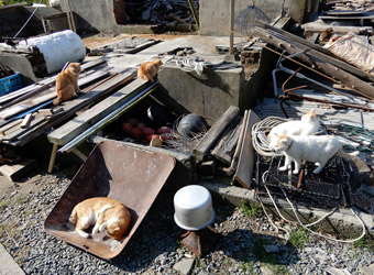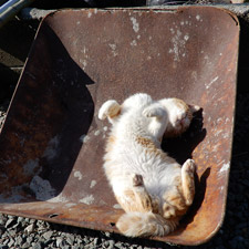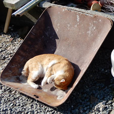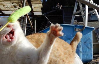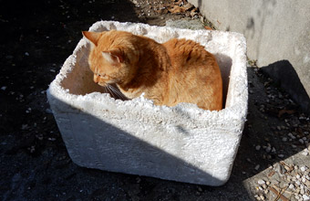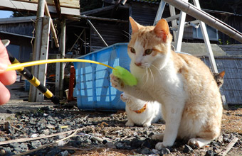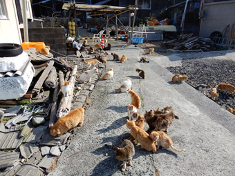注:2018年3月現在の時刻表 1便は青島港に10分しか停泊しないので、1便で青島に行った人は2便で帰る事になる。つまり8時間近く青島に滞在する事になる訳だが、島内に売店や自販機は無いので飲食物の持ち込みは必須。そして猫じゃらしなどの猫と遊ぶための道具も必須。島内にはこれと言った観光スポットは無く、長い滞在時間の大半を猫と過ごす事になるので、猫の遊び道具が無いと退屈してしまう。 そして特に重要なのが定期船の定員について。定期船は小さな船で定員は34名と少ない。事前の乗船予約はできないので、当日長浜港に並んだ先着順となる。なので乗船客の多い日に長浜港に遅く到着すると、定員オーバーで乗船できなくなってしまう。わざわざ愛媛県まで出掛けたのに青島行きの船に乗れなかった…なんて事にならないためにも、乗船客が多そうな連休などは避ける、早めに長浜港に到着するようにする…など、出掛ける日時をよく考える必要がある。 定員についてさらに注意点がある。先に説明した通り1便の長浜港8:00発に乗船した人は、2便の青島港16:15発に乗船して帰る事になる。で、2便の長浜港14:30発に乗船した人も2便の青島港16:15発に乗船して帰る事になる。なので、2便の長浜港14:30発に乗船できる人数は、定期船の定員34名から1便の長浜港8:00発に乗船した人数を引いた数だけと言う事になる。なので1便の乗船客が34名だった場合、2便の長浜港発には1人も乗船できない。 …ということで、確実に1便の長浜港8:00発に乗船するため、遅くても6:30には長浜港に到着したほうがいいと判断。そのために深夜2:00に起床し、2:30に自宅を出発。前日の就寝時間が23:00過ぎだったので3時間弱しか睡眠をとれなかった。家を出て直ぐに最寄のコンビニに寄り、朝食・昼食用の食べ物と飲み物を購入。青島には売店も自販機も無い事を絶対に忘れてはいけない。島内滞在の約8時間飲まず食わずは辛い。
