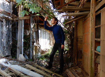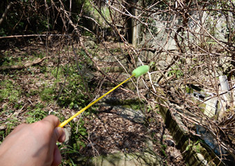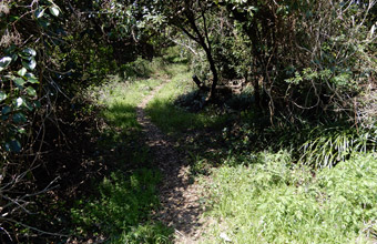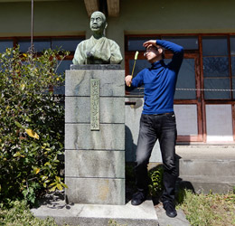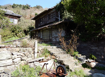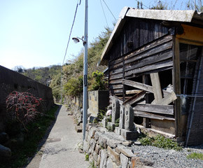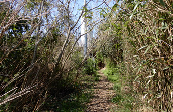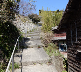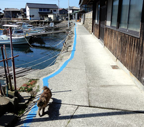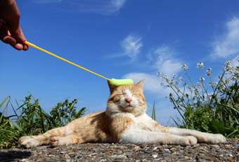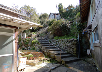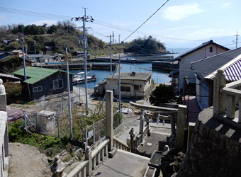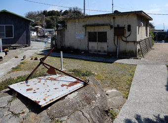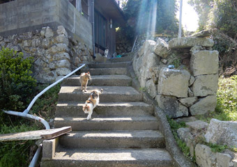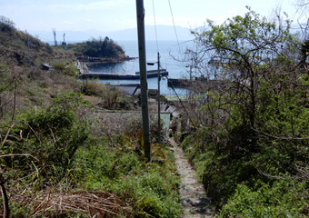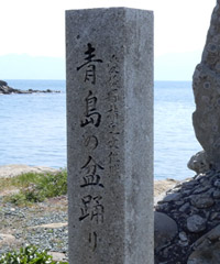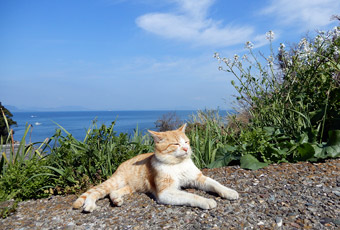 そしてやっと灯台に到着。学校から20分くらい歩いた気がする。となると平均的な脚なら青島港桟橋からは30分くらいになるだろうか。桟橋から灯台まで徒歩20分と言うのはかなり健脚な人だと思う。暑い中歩いて辿り着いた灯台は期待していたよりもずっと小ぶりで質素なものだった。まぁそれはいいとして、灯台なら周囲の風景を眺望できる高台にあるだろうと勝手に思い込んでいたが、そうではなく高い木々に360度囲まれ外の景色は全く見られない。小さくシンプルな灯台が建っているだけ、以上。さすがにこれでは観光スポットにならない。この日に灯台まで歩いた青島訪問客は自分だけかもしれない。灯台までの道のりの途中から空腹だったので、ここで昼食を食べる事に。ベンチなど腰をかける場所も無いので地面にあぐらをかき、コンビニのおにぎり3つをお茶で流し込む。綺麗な海の風景でも眺めながらならそんな食事でも少しは楽しめたかもしれないが、目の前には生い茂る木々しかないので妙に味気ない。唯一利点と言えば、食事中に猫にマーキングされる心配が無いと言う事。 |