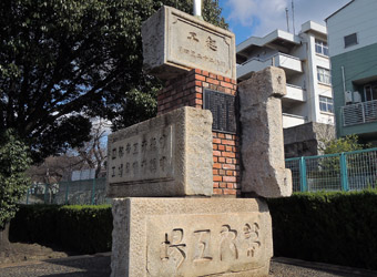 噫戦艦大和之塔は、1969年の第30回大和進水日(8月8日)を記念して建てられたもの。塔は大和の艦橋をかたどっていて、戦艦大和の砲弾と、大和と同じ工場で建造された戦艦長門の砲弾が置かれている。 |