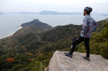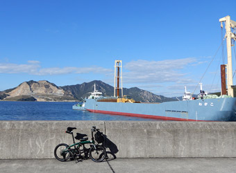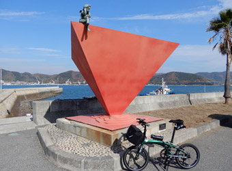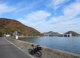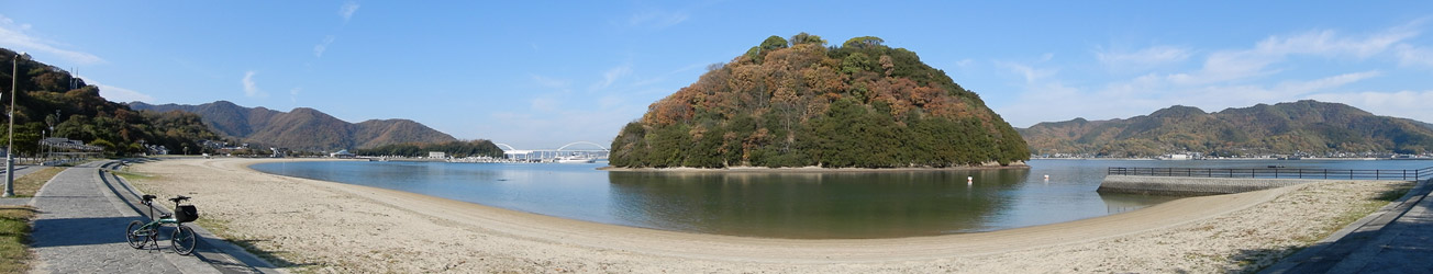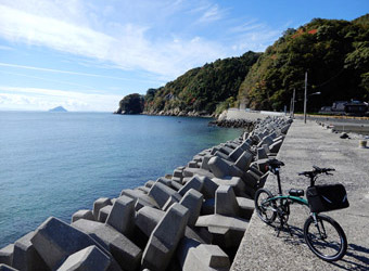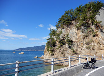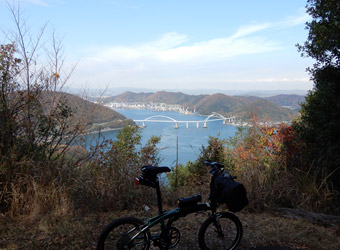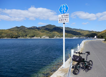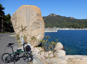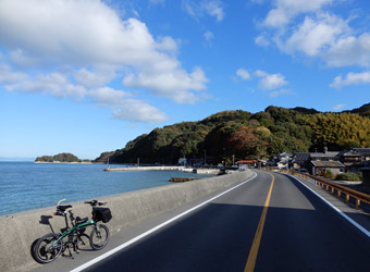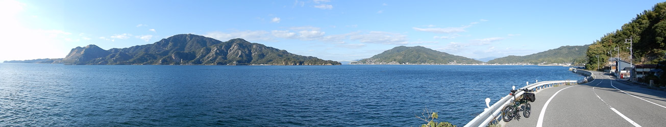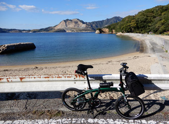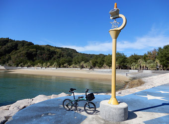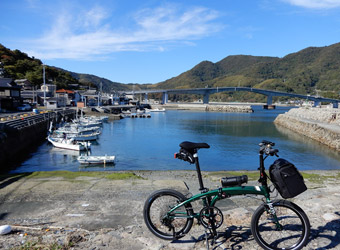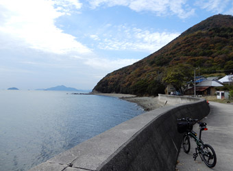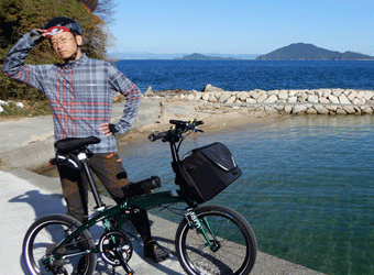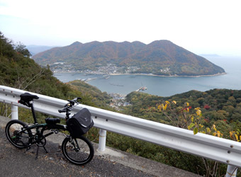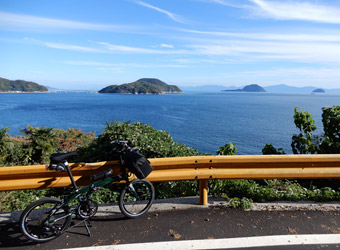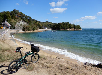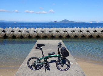 10年振りに通る道路からの風景は新鮮で、何より快晴で空も海も綺麗な青色をしていて気分がいい。晴れた日に穏やかな瀬戸内風景を眺めながらのサイクリングは最高のリフレッシュになる。そんなポタリング的な走り方にはロードバイクよりもミニベロが合っている。 |