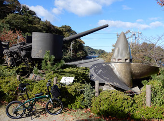 途中で陸奥公園に立ち寄り戦後の引き揚げ遺物と一緒に愛車の撮影。公園内でひときわ目立つ存在だった海上自衛隊の飛行機も愛車と一緒に撮ろうと思っていたが、残念ながら飛行機は撤去されていた。それから陸奥公園の少し先にある集落を通過して東端まで続く細道に入る。ロードバイクでは周防大島一周サイクリングを2度行なっているが、道路が行き止まりとなる島の東端まで行くのは今回が初めて。行き止まりを折り返すのが面倒だし特に何もないだろうと2度ともスルーしていた。で、初めて訪れた東端には漁港があるくらいでやっぱり特に何も無かったが、少し手前のこじんまりとした砂浜海岸に自転車を撮るのにいい場所を発見。PCやスマホの壁紙にするのにナイスな写真が撮れて満足。 |