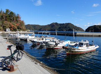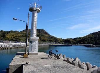 東西に広がる島の北岸のほぼ中間に位置する道の駅「サザンセトとうわ」に車を停めてサイクリングスタート。まずは周防大島東端を目指して海岸線に沿って延びる道路を進む。11月に入り朝の気温がだいぶ下がってきたところで、1年前に買っておいた長袖ジャージの出番がやっと来た。自分は結構な寒がりで真冬は何処にも出掛けたくなくなるので、寒さが本格的になる前に気の済むまでサイクリングをしておかないといけない。 |
