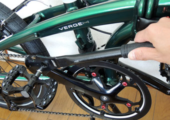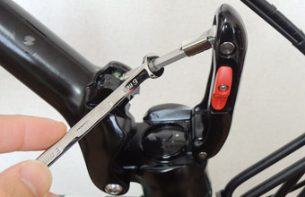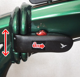 他に何が異音の原因になるのかとネットでいろいろ調べていて目に留まったのが、ternの折りたたみ自転車のフレームとハンドルポストのヒンジレバーに関するマニュアル的なページ。その中にヒンジレバー開閉の固さチェックという項があり、改めて自車のヒンジレバー2箇所を開閉して固さを確認してみたところ、フレームのレバーの開閉が少し緩いように感じた。そこでレンチを使って固さ調整ボルトを回し、レバーの開閉が固めになるように調整。緩いとは感じなかったハンドルポストのヒンジレバーもついでに固めに調整。しかしこれも全く効果無し。 |