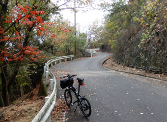 11月中旬にもなると朝の気温はひと桁の日もあり寒い。なので服装は上が長袖サイクルジャージにヒートテックのインナー、下は冬用のサイクルパンツで防寒対策。しかし寒いのは走り始めだけで直ぐに暑くなり、早々にヒートテックのインナーは脱いでフロントバッグに放り込む。そしてこの後の山登りで汗だくに…まぁ寒い思いをして風邪を引くよりはいいさ。冬場のサイクリングは服装選びが難しい。 |