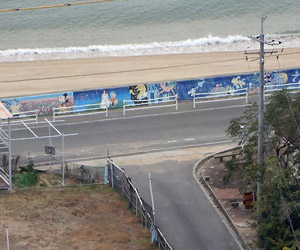 横山海岸海水浴場の堤防を見下ろす |