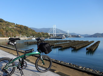 最も身近なサイクリングコースのひとつであるとびしま海道。海道が通る7つの島はみかんの産地としても有名で、季節になるとあちこちに設置された無人販売所でみかんが売られる。のんびり瀬戸内風景を楽しむポタリングの途中でみかんを買って帰る、そんなサイクリングをしたいとずっと前から思っていたが、ロードバイクに装着したバッグにみかんは入らないし、サイクリングでリュックを背負うのは煩わしくてどうしても嫌なので諦めていた。しかし大きなフロントバッグを装着したTern Verge N8ならそれが出来る!という事で、みかんの季節になった所でとびしま海道サイクリングへGO!! |