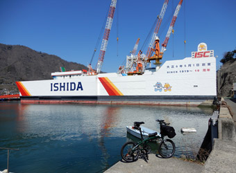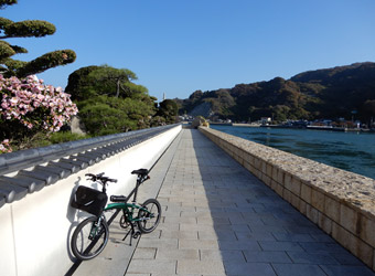 みかんを買った無人販売所から復路のスタート。とびしま海道サイクリングで大抵毎回立ち寄る御手洗町並み保存地区へ今回は行かず、岡村島まで走ってきた往路をそのまま引き返す。みかん3ネット分の重量増が多少なりとも走りに影響を及ぼすと思っていたが、実際は上り坂でも全く気にならなかった。Tern Verge N8(10速化)に乗り始めた頃から実感している事だが、終始マイペースで走るポタリングなら自転車が多少重くても負荷に感じる事はほとんど無い。 |
