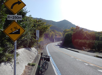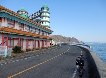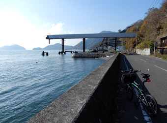 いつも通り竹原市の竹原港に車を停めてフェリーに乗船。30分ほど船に揺られて大崎上島北西岸の白水港に到着。そして時計回りに大崎上島一周サイクリングスタート。12月に入ると朝晩の冷え込みが寒がりには辛いので、サイクルジャージの下にタートルネックシャツを着用。走り始めれば直ぐに暑くなって脱ぐ事になるのは分かりきっているが、走り始めのほんの少しの間の寒さを我慢する気になれない。日中の最高気温が一桁まで落ちたらサイクリングはもうしない。寒がりは冬になると出不精になるので損だ。 |