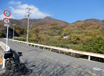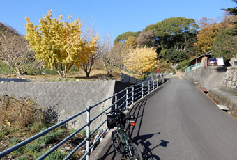 目的のお買い物は早々に完了し、引き続き大崎上島を時計回りに一周。12月に入っても紅葉風景が所々残っていたので、いつもとは違う大崎上島の風景を楽しむことが出来た。せっかくなので島内最高峰の神峰山山頂まで登って展望台からも紅葉風景を楽しもうかと思い、山道に入って長い上り坂を走り始める。がしかし、当然ロードバイクで登っていた時と比べたらしんどく、直ぐに断念して横道に逸れる。今日はお買い物目的ののんびりポタリングなんだからと、あっさり諦める。それでいいのだ。 |