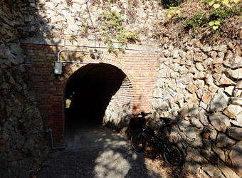 昭和4年(1929年)5月に開通した上組(かみぐみ)トンネルという名の手掘りトンネルで、長さは52.4mで工事期間は4年との事。手掘りで4年かけて50mのトンネルを掘る、何て地道で気長な作業だ。周囲に観光するような場所は無く、地理的にも観光で人が訪れる事は滅多に無さそう。そもそも一般の観光客がこのトンネルの存在を知る機会が無さそう。そんなマイナースポットを楽しむのが自分は好きだ。 |