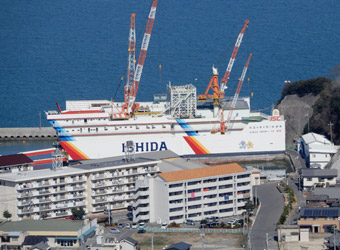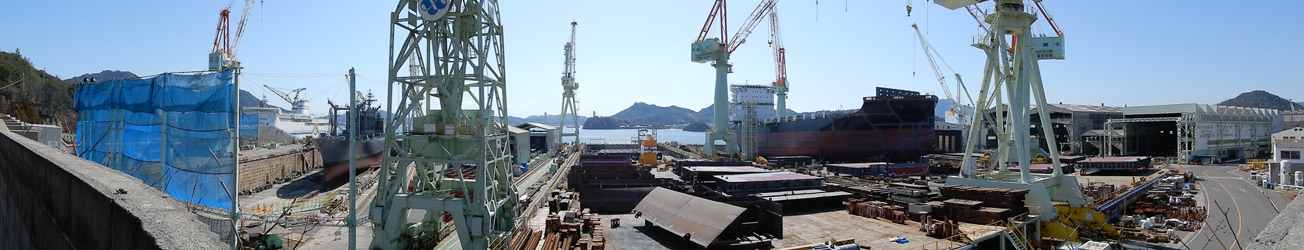 << SCROLL 因島南端の造船所 パノラマ写真180° SCROLL >> |
