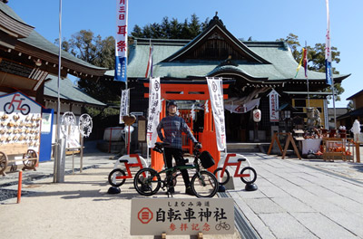 最後に「自転車神社」で知られる大山神社に寄り道。大山神社の境内に自転車神社や耳明神社など複数の神社がある、そういう神社らしい。ここへは5年半前にロードバイクで訪れて自転車用のお守りを買っている。機会があれば新しい相棒となったミニベロVerge N8に付けるお守りも大山神社で買いたいとずっと思っていた。で、いろんな種類のお守りが売られている中、以前ロードバイク用に買った「自転車・バイク守る輪」を今回も購入。輪っかの紐の色と模様が何種類もあり、フレームカラーの緑と差し色の白に合わせてお守りを選択。 |