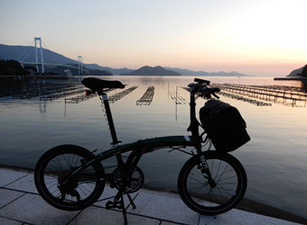 仕事は一週間の盆休み。社会人にとって貴重な大型連休ではあるが、暑さが厳しくて何処かへ出掛けたりする気分にはならない。だからと言って何処へも行かず何のイベントも無いまま連休を終えるのはつまらない。なのでせめてサイクリングを1回だけでもしようと決めた。で、今回は夜明けと共にサイクリングを始めて正午までに帰宅できるようにしたいと考え、自宅から近くてフェリーに乗る必要もない(前回の大崎上島サイクリングは朝一の便が遅くてスタートが7:30になってしまった)とびしま海道を選択。 |
