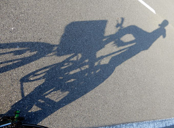 堤防の影に自転車の影を乗せてみた |