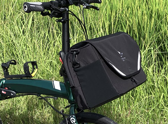 フロントバッグと両足スタンドもミニベロサイクリングには欠かせないアイテムになっている。大容量のフロントバッグは工具類や補給食などの必須携行品から三脚やアウトドアマットなどの大き目な物まで全て収まる。更にサイクリング中にちょっとした買物をして詰め込むこともできる。ロードバイクでは必要最低限の工具類と補給食しか携行できなかったので本当に便利なアイテム。それと安定性抜群の両足スタンドは何処にでも自転車を停められるので写真撮影で大活躍。場所を選ばず好みの風景を背景にして自転車を撮れるので楽しい。ロードバイクにはスタンド未装着だったので、自転車を立て掛けられる場所でしか撮影できないのがネックだった。 |