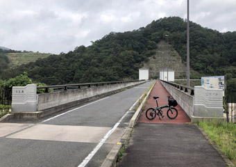 道の駅に8:00に到着して早速サイクリングスタート。まずは道の駅から見える福富ダムを目的地にして、あえて少し遠回りになる道のりを選ぶも直ぐに到着。どんよりとした曇り空でちっとも景色は映えず、分かっていたがイマイチ面白くない。そしてイベント開始までまだ1時間半以上も時間がある。なので道の駅から約5kmの場所にある「県央の地」まで走る事に。広島県の中心地となる場所でモニュメントがあり興味を惹かれたが、山道を暫く上らないといけないので面倒くさい気持ちの方が勝り、行こうか止めておこうかずっと迷っていた。しかし他に道の駅周辺で行きたい場所は無いし、県央の地までサイクリングをする他にイベント開始まで時間を潰す手段は無かった。 |