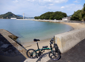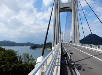 早速新しいフロントバッグを装着してサイクリング。場所は生名島・佐島・弓削島・岩城島の四島が三つの橋で繋がれた |