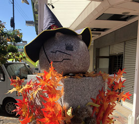 竹原駅前商店街は完全にたまゆらモード。あちこちでたまゆらのポスターやキャラクターの等身大ポップなどを見かける。作中に登場する架空の生物「ももねこ様」の石像まで設置されていて、たまゆらで町興しに力を入れている。しかし残念な事に商店街は完全なシャッター通りになってしまっている。以前よく竹原を訪れていた頃からシャッターは目立っていたが、年月と共にシャッター通り化が進行している様子。 |