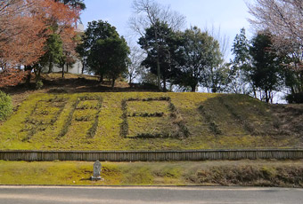 無くなっていた「朝日山」の植栽文字(2014年撮影) |