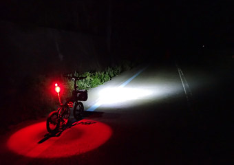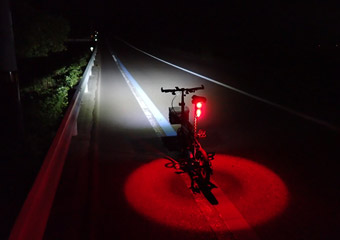 ”シュッ、シュッ、シュッ”とずっと音がしたまま走るのは気になるので、明るい場所でブレーキの再調整をする。接触音がする後輪のブレーキクリアランスを微調整し、これで大丈夫だろうと走り始めるもまだ音が聞こえる。運転しながら耳を澄まし改めて音源を探ると、後輪ではなく前輪から音が出ているような気がして来たので、再び明るい場所で今度は前輪のブレーキクリアランスを微調整。すると接触音は出なくなった。自転車から出る異音は耳を澄ましても発生源がハッキリしない事がある。Verge N8でも異音の発生源と原因を突き止めるのに苦労した事がある。自転車から出る異音とはそういうものなのだ。 |
