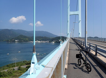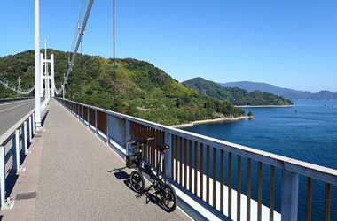 K9Xの納車から丸半年を迎えた今回のサイクリングで積算距離は1340km。期待した以上によく走る自転車で運転するのが楽しく、サイクリングに出掛ける頻度がVerge N8に乗っていた時よりも明らかに増えた。それと、今回で11度連続のとびしま海道サイクリングとなったが、そのうちK9Xで走った10回分の走行距離の合計が約760kmで、半年間の積算距離の半分を超えている。他にも2度K9Xでとびしま海道を走っていて、その距離も合わせると約910kmになる。半年間で1300km強走ったうちの2/3はとびしま海道という驚き?の結果になった。 |