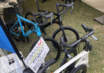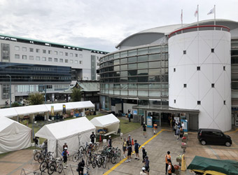 会場の野外スペースには自転車関連企業やイベントスポンサーによる商品展示・物販等が行なわれていて、受付完了後にざっと見てまわる。受付を済ませたら直ぐに会場を後にする人がほとんどで、野外スペースに参加者の姿は少なく寂しい印象。2018年に参加した時も同じような感じだった。2018年のプレイベントは10:00から野外ステージでトークや和太鼓演奏などのイベントが始まったが、今回は何故か13:00開始という事で尚更会場に留まる人が少ない印象。自分もステージイベントは待たず早々に帰路に就く。どんよりとした曇り空の下で何時間も時間を潰すのは無理だし、帰宅後もやることが沢山あるので昼過ぎまで尾道にはいられない。 |