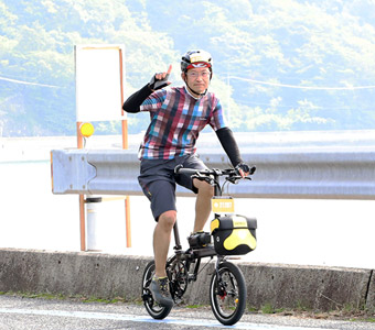 因島大橋を渡って向島に下りてからはのんびりペース。流石にもう張り切る体力も脚も残っていない。海岸沿いの外周路を走っている時にカメラマンに撮られた写真がなかなかイイ感じだった。こんな感じの写真がもっとたくさん撮られていたら嬉しかったが、走行距離が55kmと短めの種目だし仕方が無いか。ともあれ、またサイクリングしまなみに参加する機会があったら次は70kmの種目にエントリーしよう。自分の体力・脚力で55kmの種目は小径車でもチョイ短かった。 |