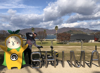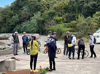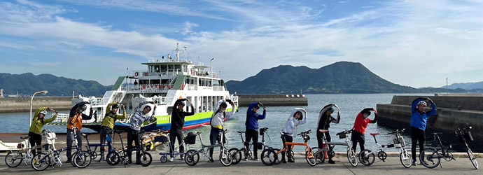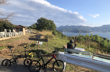 K9Xを購入したミニベロ専門店「PALM」が運営する走行会に初参加。設定されたコースはしまなみ海道の大三島一周50km。2017年にロードバイクで走行会に一度参加して80km走ったが、あの時は走行ペースが速くて終盤はスタミナ切れしてまともに付いていけなかった。今回はミニベロオンリーのゆる〜い走行会なのでそんな心配は無い。 |