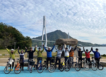 スタート&ゴール地点の大三島盛港で記念撮影 |