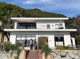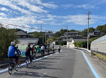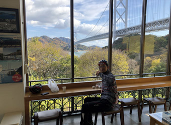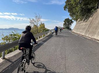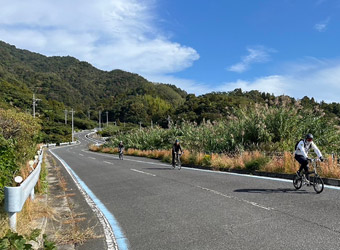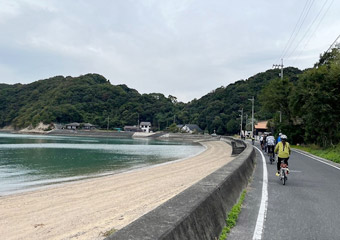 11:00から事前予約してあるカフェレストランでランチ。普段のソロサイクリングは大抵コンビニおにぎりで済ませてしまうので、ちゃんとした店に入って大人数で食事をするのは新鮮だ。それから引き続き外周路を走行。大三島一周サイクリングはこれまでに何度もしているが、県道の外周路よりも更に外側にある細道など自分が知らない道も結構走ったので、その点も新鮮味があってよかった。 |
