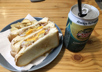 途中で伯方の塩の工場に立ち寄り、軽く工場見学をして塩アイスを食べて、それから14:00にカフェバーに入っておやつタイム。各自サンドやピザを注文してシェア。甘々サンドが重くて胃がもたれる。これがロングライドだったら走りに影響が出ていたに違いない。 |