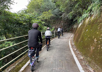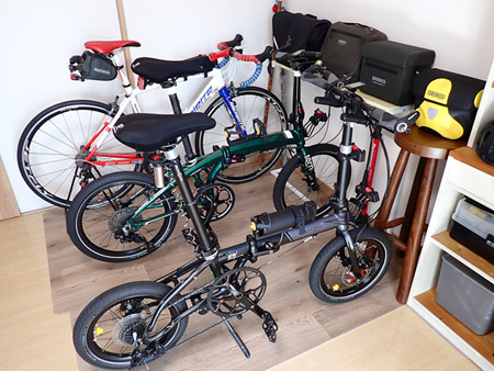 参加人数はショップオーナー含めて12人で平均年齢は高め。46歳の自分でも若い方だった。ミニベロ乗りは若者より中年以上が多いとよく言われるが、どうやら間違いではないらしい。参加者の自転車は何と12台中6台がbirdy。前後サスペンション付きで乗り心地がいいからなのか、ショップがbirdy推しなのか。それからE-バイクが3台。そして驚いた事に8インチタイヤのCarryMeで参戦の参加者も。直径約20mの極小タイヤにも関わらず100kmは走れるとの事。16インチのK9Xでロングライドやヒルクライムをする自分はなかなかのミニベロ乗りだと思っていたが、上には上がいる事を思い知らされた。 |