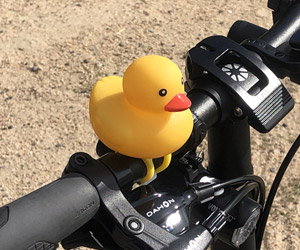 3ヶ月くらい前にダイソーで買ったアヒルホーンを今回初めて装着!お気に入りのアヒルバルブキャップに合わせてジョークで買ってみたが、恥ずかしいのでソロサイクリングでは付けられずにいた。100円の安物でも存在感増し増し!そしてパフパフッと愉快な音を出す!!…まぁコイツの出番は今回限りだと思う。 |