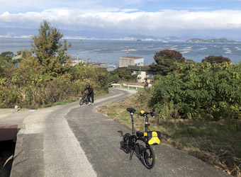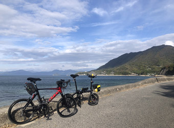 8ヶ月振りに江田島一周70kmサイクリング。前回江田島を一周したのはK9Xを納車して間もない2024年3月で、さらにその9ヶ月前にはVerge N8で一周している。広島を代表するサイクリングコースのひとつである「かきしま海道」の一部である江田島は、自分のホームコースとも言えるとびしま海道ほど走ってはいないが、自宅から比較的近くて江田島ならではの風景が沢山あり定期的に走りたくなる。今回はミニベロロードを所有する職場の同僚と2人でサイクリング。体力・脚力共に自分の方が上なので、16インチのK9Xと20インチのミニベロロードで丁度いいペースだった。 |