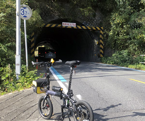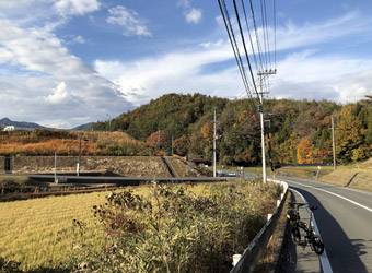 途中で斜面崩落による通行止めがあり、迂回路になっている山の斜面の狭い農道に入る。これがとんでもない激坂で、これまでのサイクリングで遭遇した激坂の中でもトップクラスの急勾配。それでも意地でペダルを漕いで上り切ろうとしたが、勾配があまりにもキツくて距離も長くて途中で足をついてしまった。そして上り切った後の下りも激坂で、ブレーキ操作を誤ったら前へつんのめって転げ落ちそうなほど。想定外の激坂走行だったがなかなか楽しめた。 |