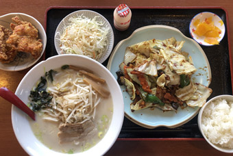 サイクリングの後に台湾料理店で遅い昼食。超特大唐揚げ2つとラーメンが付いている定食メニューを注文し、約70km走って結構な腹ペコから超満腹に。サイクリング中にこんなに食べたらきっと動けなくなる… ところで、サイクリング中に同僚のミニベロロードを10kmほど運転したが、K9Xと比べて明らかに走りが軽快でグングン進むので、自分もミニベロロードが欲しくなってしまった。ロードバイクに乗っていた頃からミニベロロードに関心があったので、そのうち買ってしまうかもしれない。 |