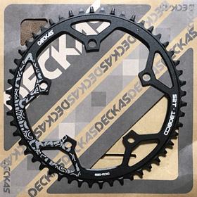更にチェーンリングも交換する事に。これまでチェーンリングはノーマルのままだった。樹脂製のチェーンガード付きで脚が汚れにくく、チェーンの脱落防止にも貢献するのでそのままでいたが、少々安っぽい見た目なのがネックだった。今回グラベル風カスタムするにあたってチェーンリングもそれっぽいデザインのものを選んだ。 |