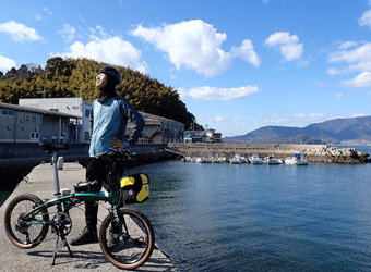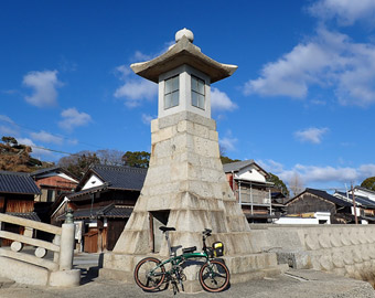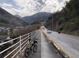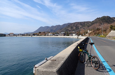 強烈な向かい風は吹き続け、何とか大崎下島まで進むも往復の折り返し地点である岡村島まで行くのがしんどくなり、折り返しを大崎下島の御手洗町並み保存地区に変更。向かい風による空気抵抗が本当に辛い、しかもかなり寒い、おまけに自転車の写真撮影も難しい。かなり厳しい条件下でのサイクリングになってしまった。 |