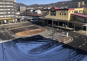 降り始めは小粒だった雪は次第に大粒になり、同時に降雪量も増加。そうなると降りそそぐ雪が視界の妨げにもなり鬱陶しさは倍増。さらに冷たい風が吹くようになり寒さも増して身体が冷える。おまけに低く下りた雲と降雪で辺りの風景は霞んでしまう。そんな訳で、もっと走りたい気分だったが仕方なく自宅へ引き返す。降雪中は色々とサイクリングに向いてなかった。 |