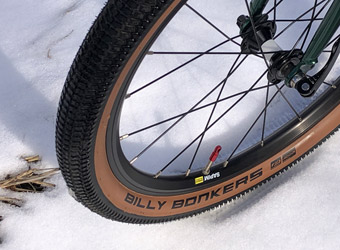 肝心の舗装路での走行性能も予想以上にいい。空気圧をマックス手前まで上げた状態なら十分に転がりが良く、走りが重いと不満に思うほどの転がり抵抗は感じない。実際はブロックパターンによるパワーロスが若干発生しているのかも知れないが、自分のようなポタリング寄りの走り方なら問題にはならないレベル。 |