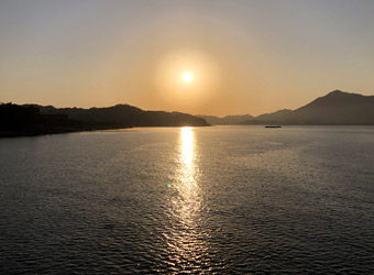 フェリー乗船と同時に日の出 |