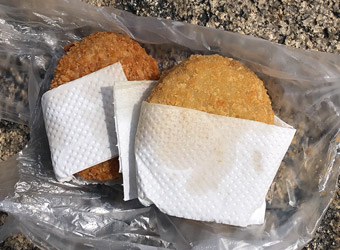 コロッケとメンチカツを食べる |
