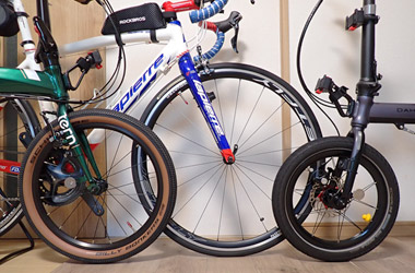 ところで、次に小径車を買うならミニベロロードが欲しいと考えている。ロードバイクと同じようにドロップハンドル装備で前傾姿勢の小径車に乗れば、N8やK9Xとはまた違った気分でサイクリングを楽しめそうな気がする。ただ、ミニベロロードはタイヤがロードバイク並みに細いモデルが多く、タイヤ径が小さい分ロード以上に乗り味が硬くなるので、速く走れても疲れるのもお尻が痛くなるのも早くなる。小径車には速さよりも乗り心地を求める方なので、それを考えると自分にミニベロロードは向いていない気もする。 |