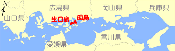 生口橋を渡って因島に入る |