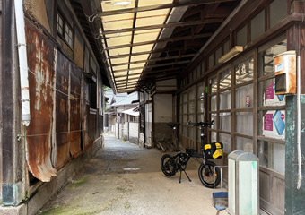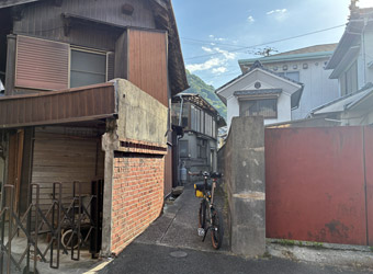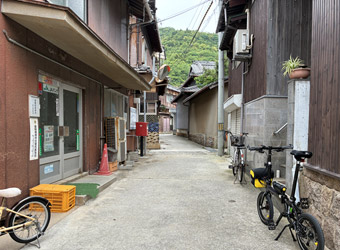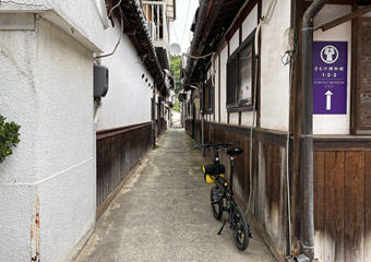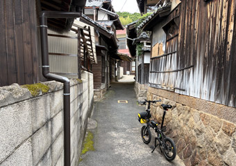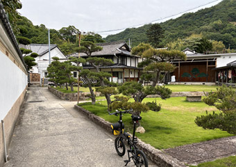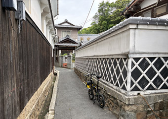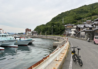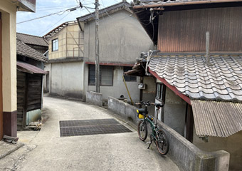 空も海も灰色で瀬戸内風景を楽しめないので、古い町並みが残る室尾を軽く散策。車が入れない狭小道路が入り組んでいて、ひと月前に観光した小豆島の迷路のまち以上に迷路状態。なかなか散策のし甲斐がある町だ。室尾の町並み散策をするのは今回が初めてで、快晴だったら寄り道していなかったかも知れない。そう考えれば今回の曇天サイクリングもやっぱり無駄ではないと思える、そういう事にしておく。 |