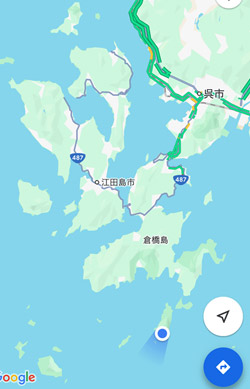 広島最南端から約15kmの道のりは往路で走ったコースの引き返しで、倉橋島南西部の外周路に入った所でやっと復路のみの走行ルート。倉橋島南部+鹿島サイクリングは同じ道を往復する区間が長いのがネックだ…と思ったが、よくよく考えてみればしょっちゅう走っているとびしま海道往復も同じようなものだった。 |